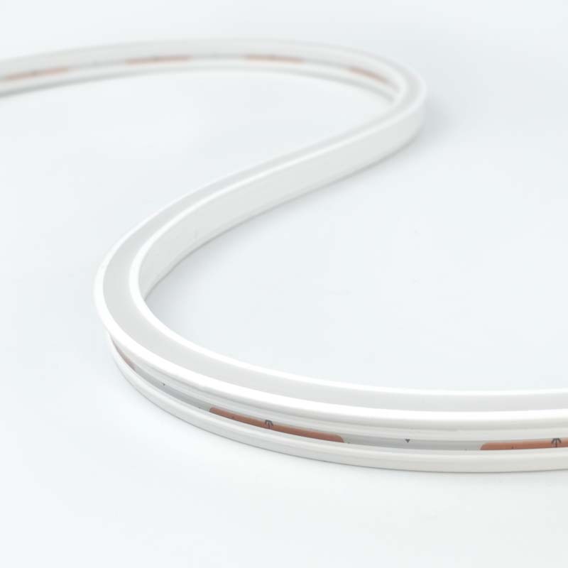 Tira de neón integrada 0612, bajo voltaje 24 V, tamaño de sección: 6 mm * 12 mm (ancho * alto), cuerpo de lámpara con tarjeta, instalación integrada de perfil libre, conveniente y rápida, ahorro de costos, uso de material de silicona, buena flexibilidad, nivel de protección IP44, resistente al agua Y a prueba de polvo, excelente resistencia a la intemperie, antienvejecimiento, antiamarillento, luminoso uniforme, luz brillante pura, adecuada para espacios comerciales, hoteles en casa, iluminación lineal de exposiciones de arte.