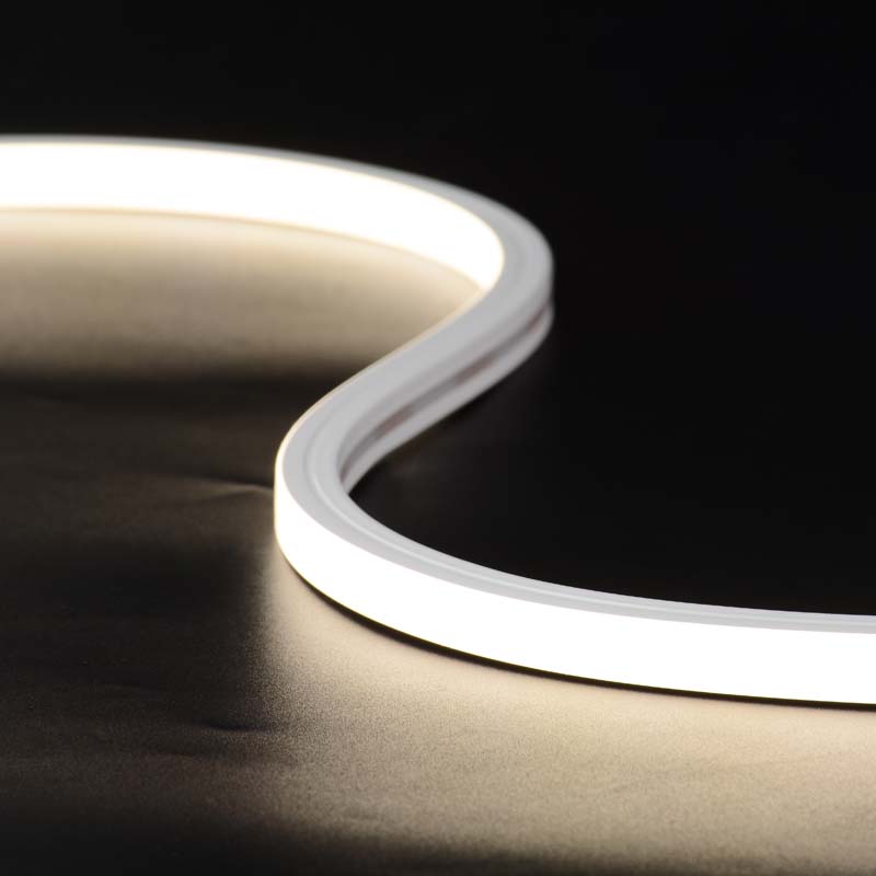 Tira de neón de silicona 1212, curva lateral, que utiliza moldeo por extrusión de silicona de grado impermeable IP67, resistencia a ácidos y álcalis, resistencia a la corrosión, resistencia a los rayos UV y otras características excelentes, cable de entrada frontal/lateral/inferior, para satisfacer más espacio de instalación.