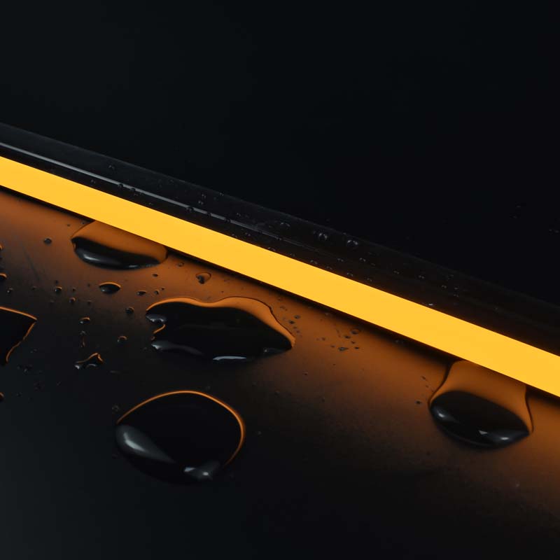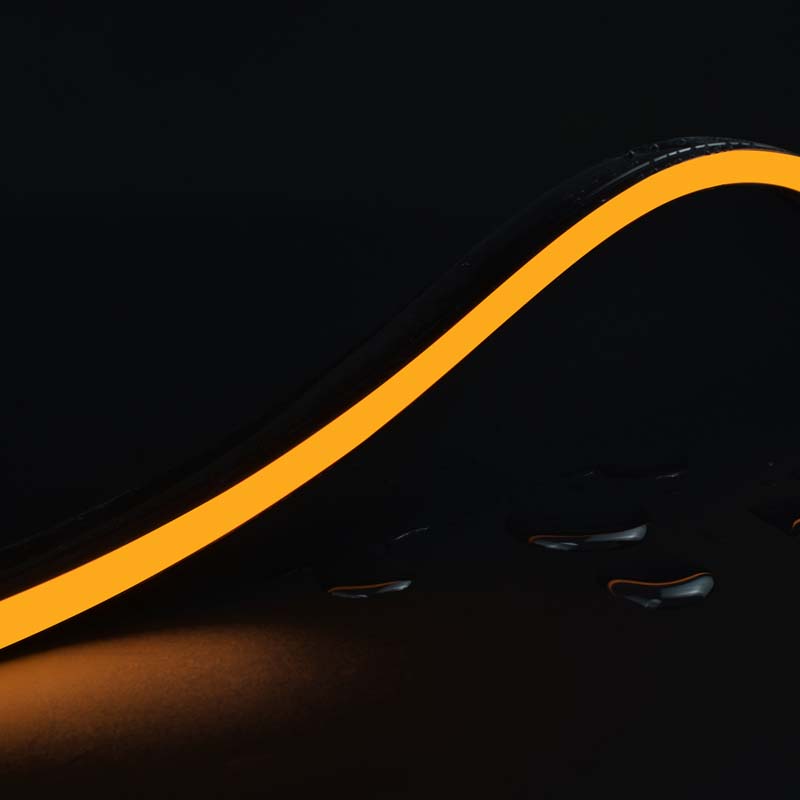 Tira de neón de silicona negra 1220, cuerpo de lámpara negro único, que utiliza alta transmisión de luz de material de gel de sílice de grado de protección ambiental, luminosa uniforme, sin punto de luz, tira flexible de bajo voltaje de 24 V, grado impermeable al aire libre IP67, resistencia a ácidos y álcalis, resistencia a la corrosión, uv Resistencia y otras características excelentes, diseño de modelado fácil, adecuado para ingeniería/iluminación comercial interior y exterior.