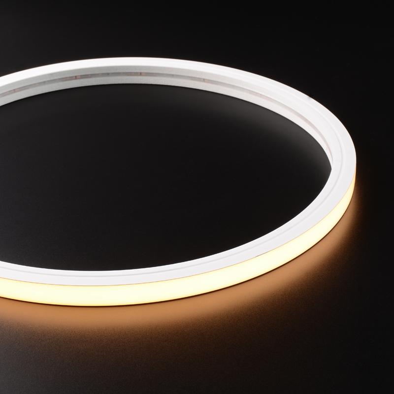 Vista superior, flexión vertical. SDCM<6, cumple con los requisitos de eficiencia energética de ERP. Adopte el material de silicona anti-UV de protección ambiental de primera clase. Lineal luminoso, uniforme y suave, sin mancha, sin sombra. Proceso de moldeo por extrusión integrado, grado de impermeabilidad hasta IP67, adecuado para iluminación lineal interior y exterior.