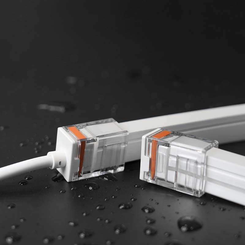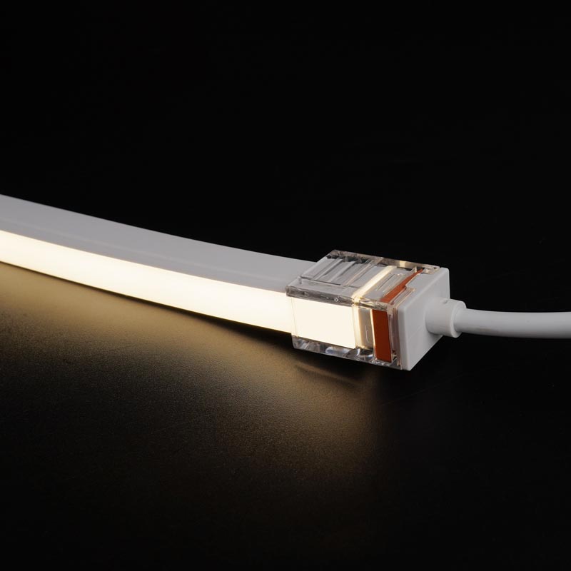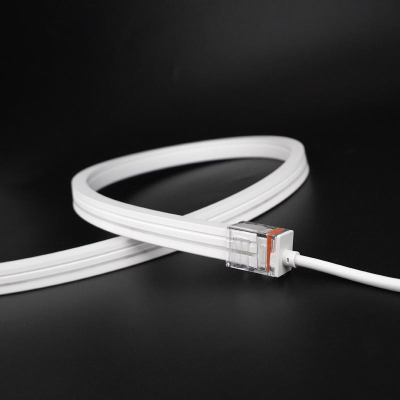 Tira de neón de silicona 1220, AC220-240V, curva superior, que utiliza moldeo por extrusión de silicona de grado impermeable IP67, resistencia a ácidos y álcalis, resistencia a la corrosión, resistencia a los rayos UV y otras características excelentes, cable de entrada frontal/lateral/inferior, para satisfacer más espacio de instalación.