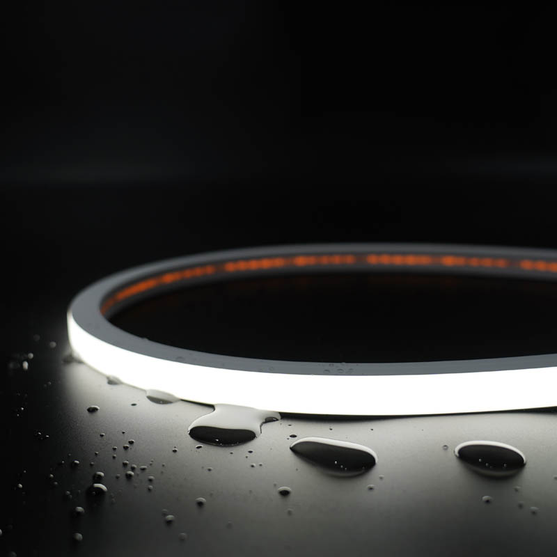 Tira de neón de silicona 1615, AC220-240V, TOP Bend, que utiliza moldeo por extrusión de silicona de grado impermeable IP67, resistencia a ácidos y álcalis, resistencia a la corrosión, resistencia a los rayos UV y otras características excelentes, cable de entrada frontal/lateral/inferior, para satisfacer más espacio de instalación.